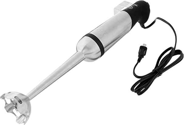 The Vitamix Immersion Blender comes with a 5-different variable speed. The immersion blender is designed for blending hot soups or purees, and it is a multifunctional/multi-purpose blender. The design of the handle is ergonomic. Vitamix Immersion Blender is another brand on our list that comes in a stainless-steel color. The whole material of this hand blender is also stainless steel. There are five different speed settings available with this hand blender, and the ergonomic handle design gives you the perfect grip to work for longer durations. There is a blade guard and scratch resistance to make your favorite smoothies or protein shakes in your favorite pots and pans without scratching them. The robust material of this hand blender makes every blending of smoothies are, protein shakes, or soups are anything faster and easier.