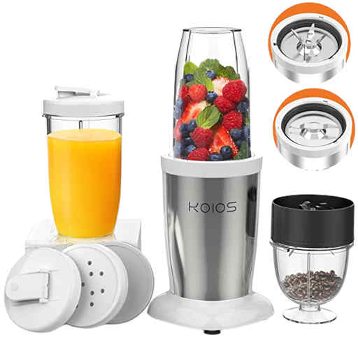 KOIOS PRO 850W Bullet Personal Blender is a blender that can also make smoothies. The Blender comes with mixing and storage containers, a mixing bowl, and an ice crusher to have everything you need to make quick and healthy meals. This is the perfect Blender for making nutritious protein shakes or smoothies.
